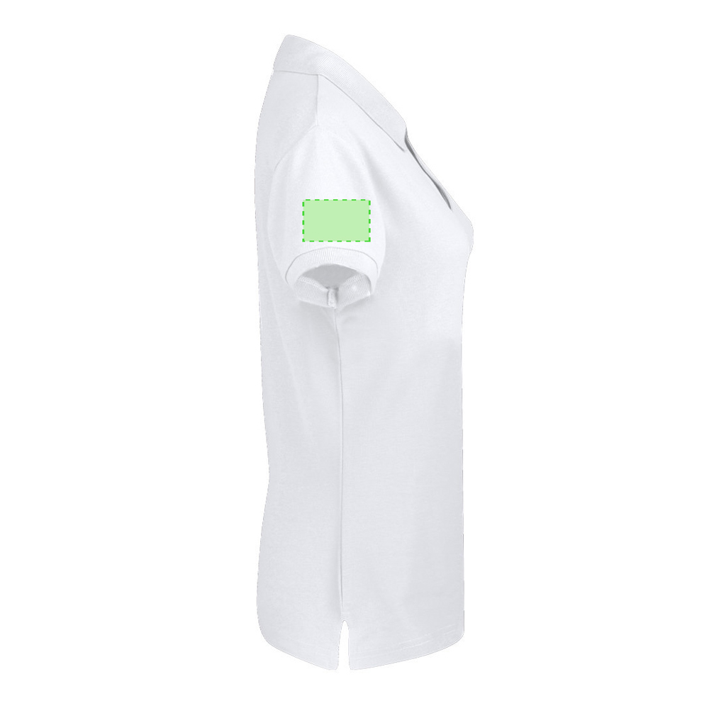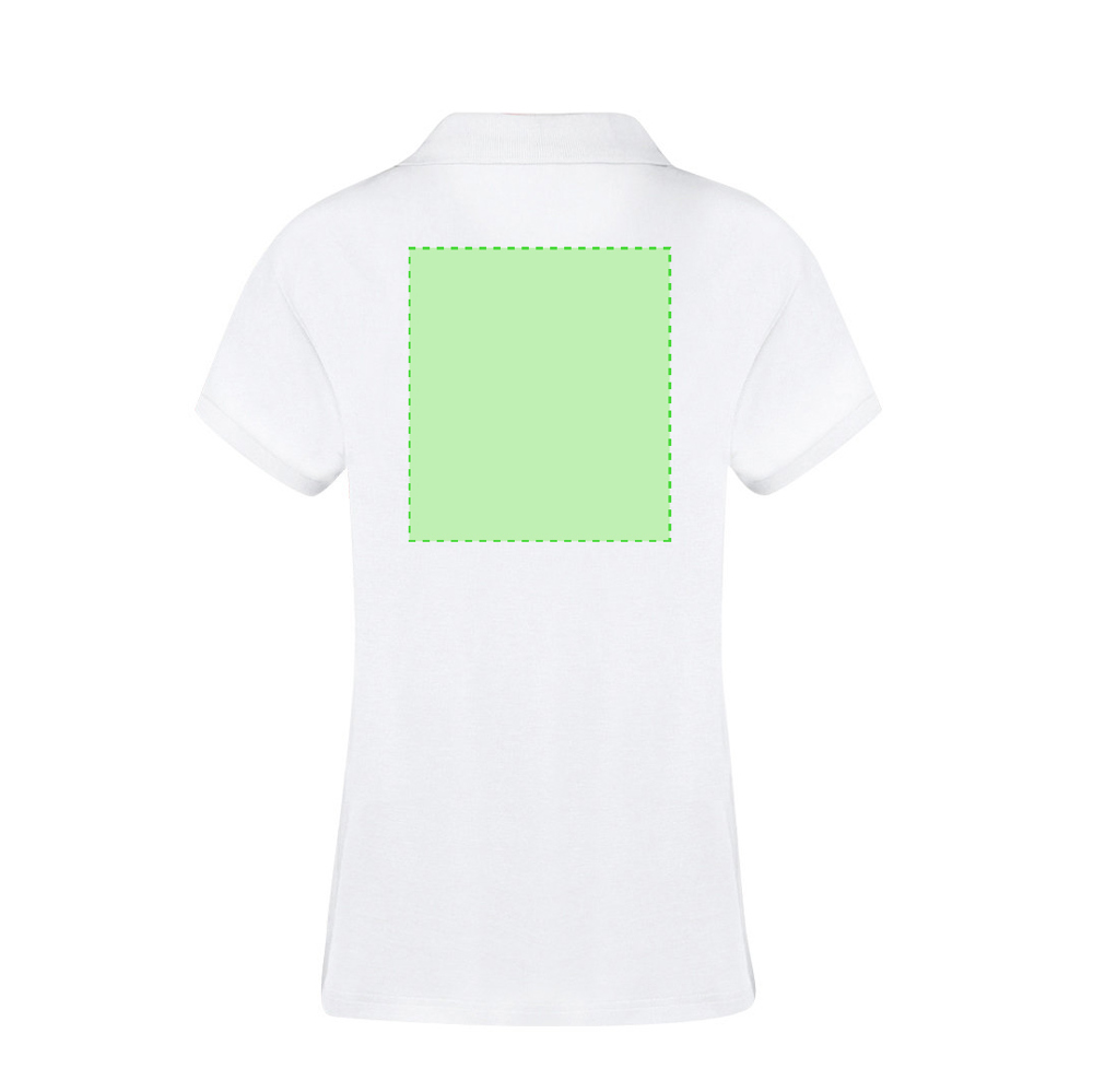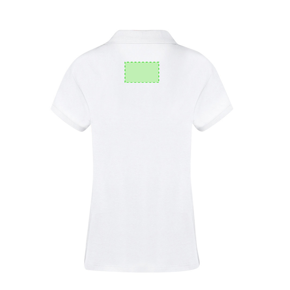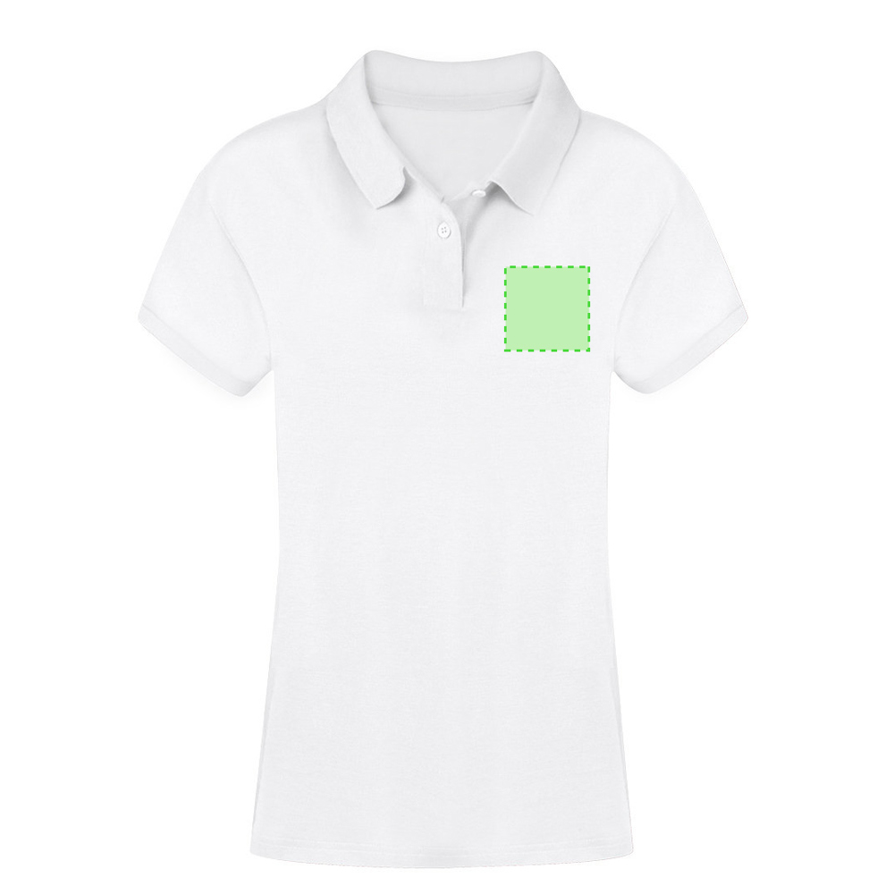 Piqué-Poloshirt für Damen in Weiß. Aus 100% Baumwolle mit 220g/m2. Mit zwei passenden Druckknöpfen und seitlichen Öffnungen am Saum. Leicht abnehmbares Etikett. Größen S, M, L, XL, XXL.