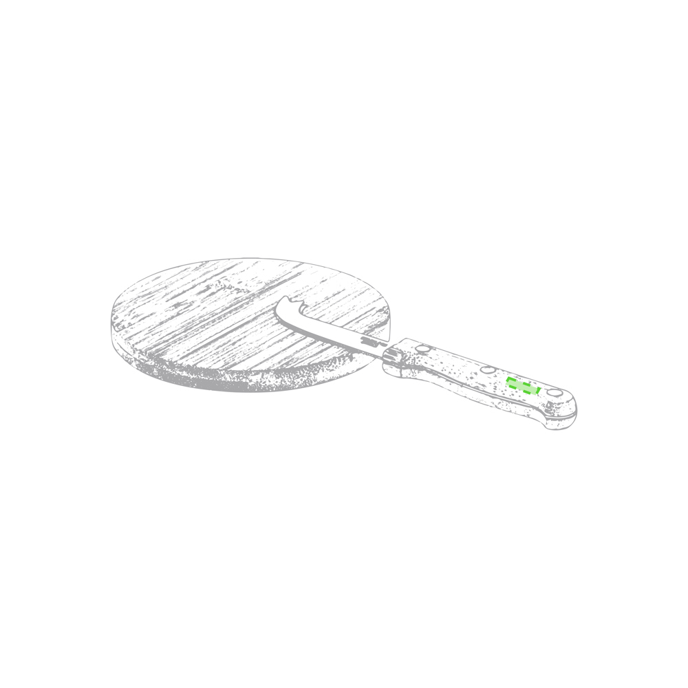 Käseset der Linie Natur hergestellt aus Bambus und rostfreiem Stahl. Mit rundem Schneide- und Servierbrett und einem speziellen Käsemesser. Präsentiert in einem individuell gestanzten Etui aus recyceltem Karton mit Kraftlackierung.